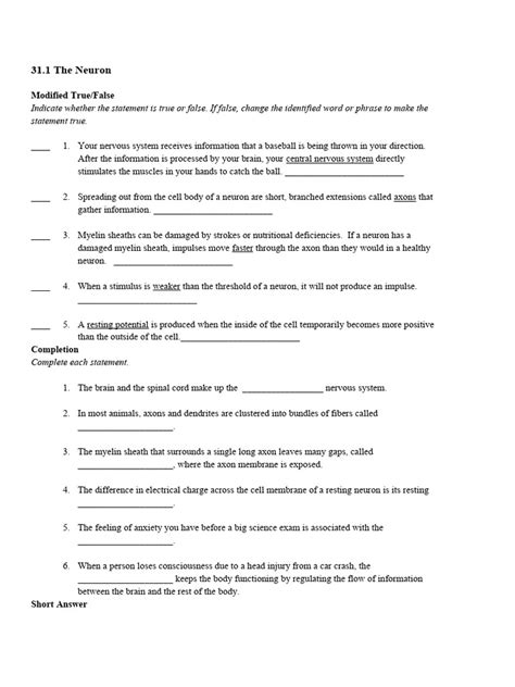 Read Online chapter 31 1 the neuron worksheet answer PDF